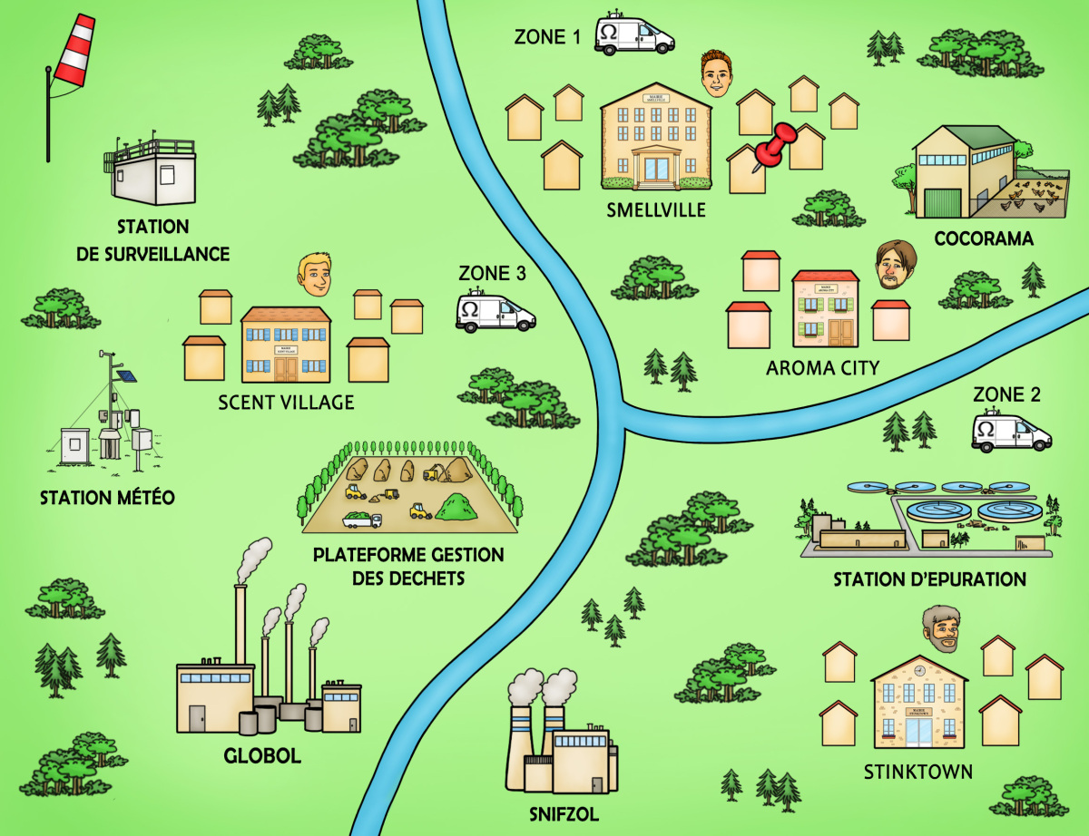 La plainte signale une odeur de "pipi de chat" (punaise rouge). Cliquez sur la station de mesure ou la station météo pour en savoir plus.